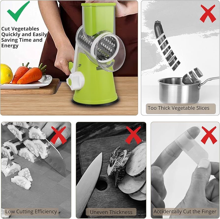 هنخليكي تحسي بالأنجاز والراحة في مطبخك مع قطاعة الخضار الدوارة وكمان هتنسي جو السكاكين القديم اللي كان بيسبب ليكي الجروح ✨