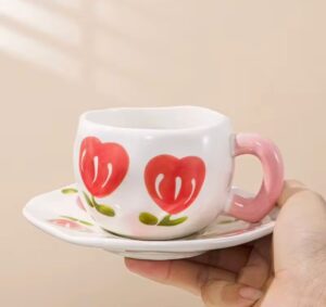 ❤️ قهوتك معمولة بحُب! مج خزف القلب – رقة وأناقة مفيش بعد كده! ☕💖 المج ده رقيق جداً وشكله مُبهج! التصميم الرومانسي ده هيخلي فنجانك الصباحي مليان دفء وسعادة! مثالي للشاي 🍵، أو القهوة ☕، أو مشروبات الكاكاو الساخنة! ✨🤩