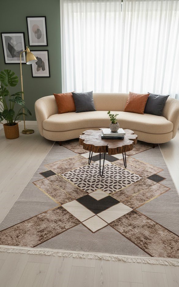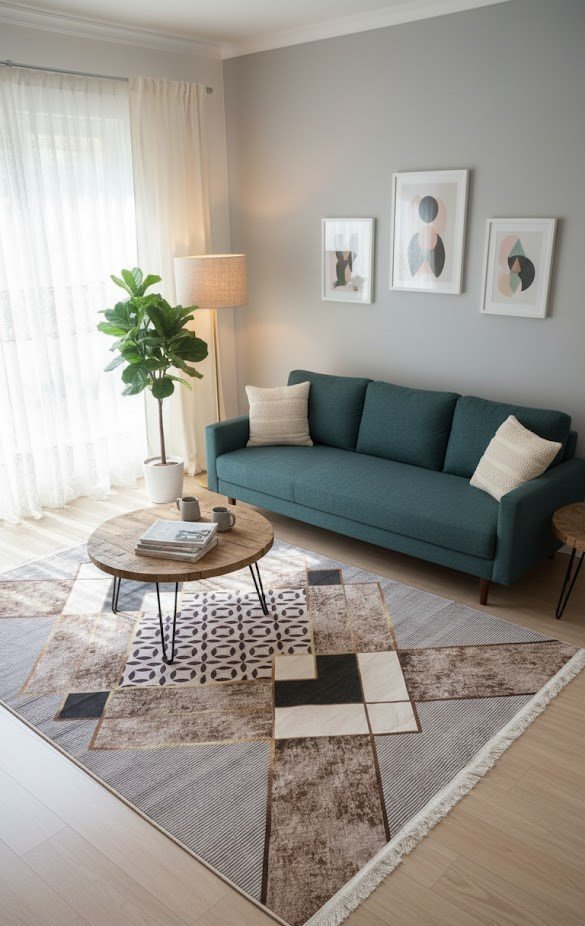 بتدي نفس إحساس السجادة الكبيرة اللي مالية المكان، بس من غير ما تحسي إن المساحة مزنوقة.