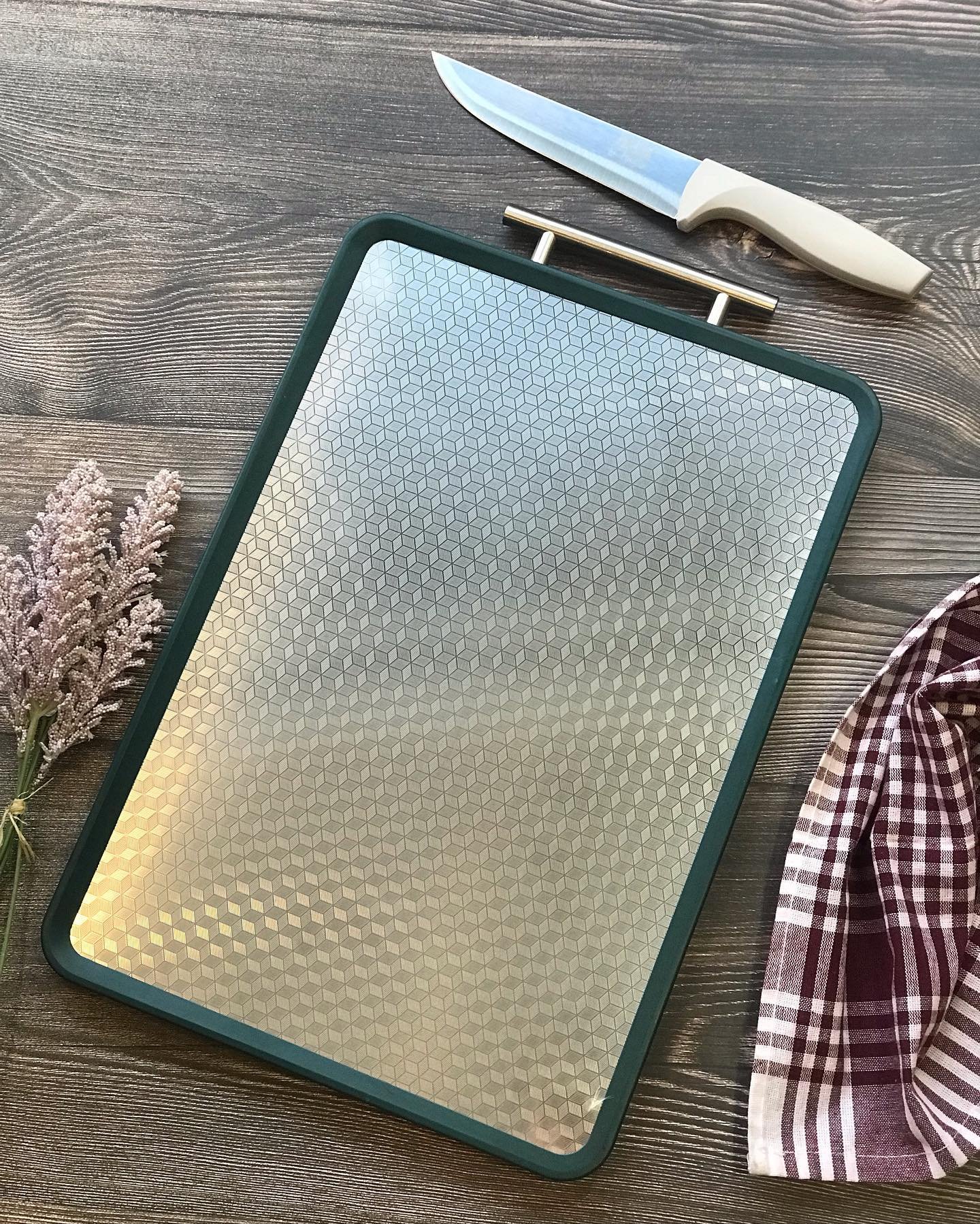 ✅ حواف مطاط مانعة للانزلاق – ثابت على الرخامة وأمان أكتر ✅ من غير أطراف حادة – استخدام آمن ليكي ولأسرتك ✅ مقبض مدمج – سهل الحمل والتعليق للتهوية ✅ سهل التنضيف – شطفة مية أو غسلة خفيفة وخلاص ✅ مش بيمسك ريحة ولا لون ✅ شكل شيك يليق بأي مطبخ